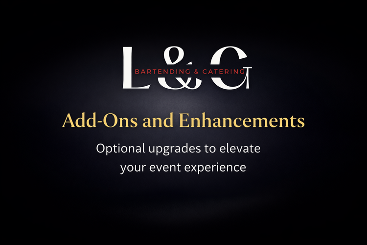 Customize your event with premium bar styling, signature drinks, staffing upgrades and luxury presentation enhancements.